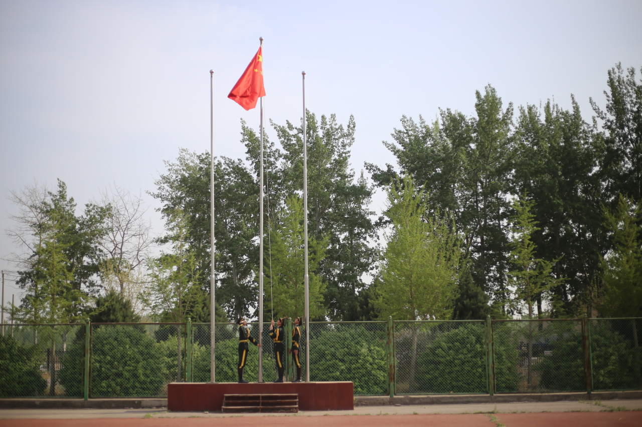 伴着国歌,全场肃立,鲜艳的五星红旗升起在绿茵场上。