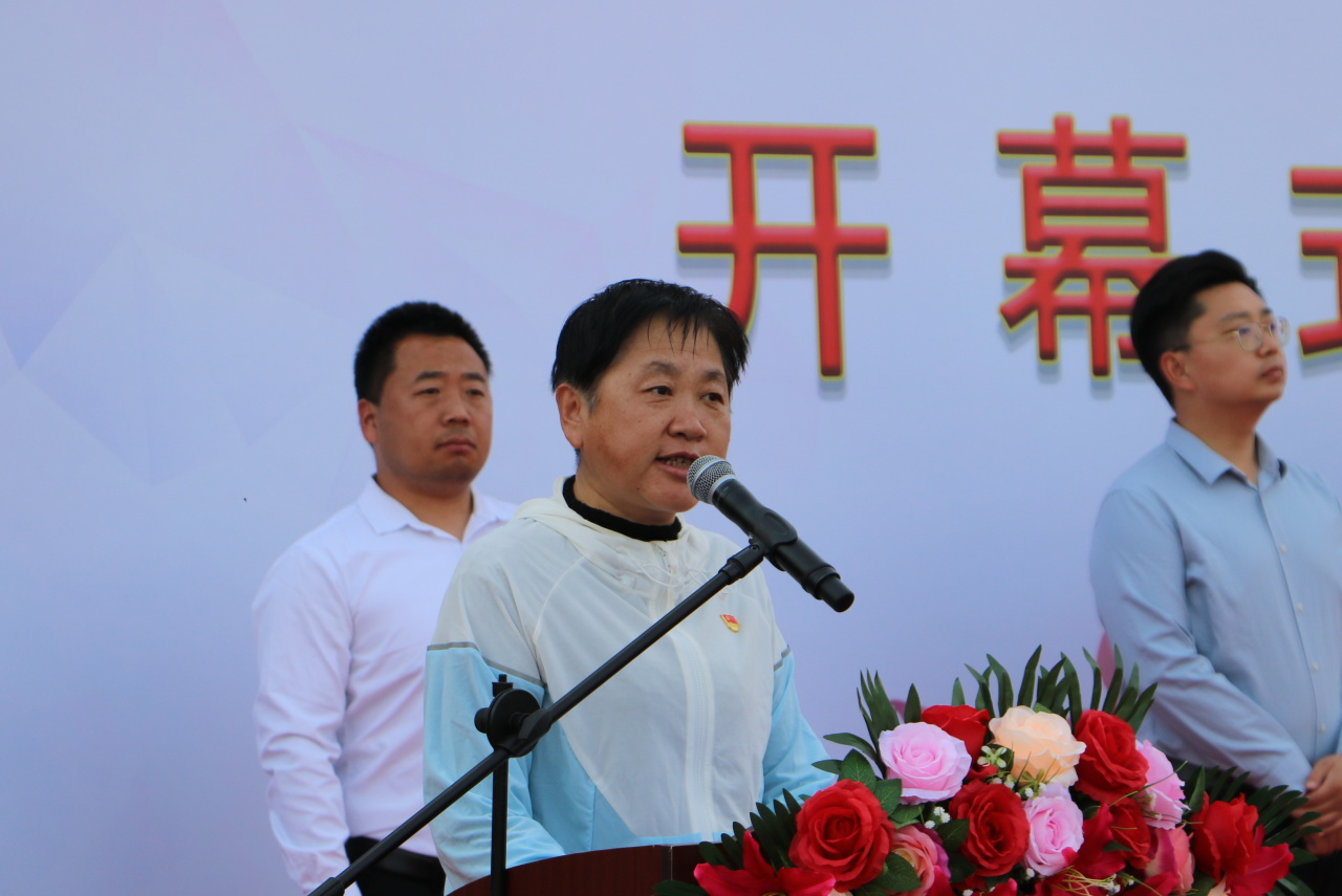 各位运动员整齐列队,啦啦队表演精彩节目,主持人焦岩处长宣布开幕式开始。