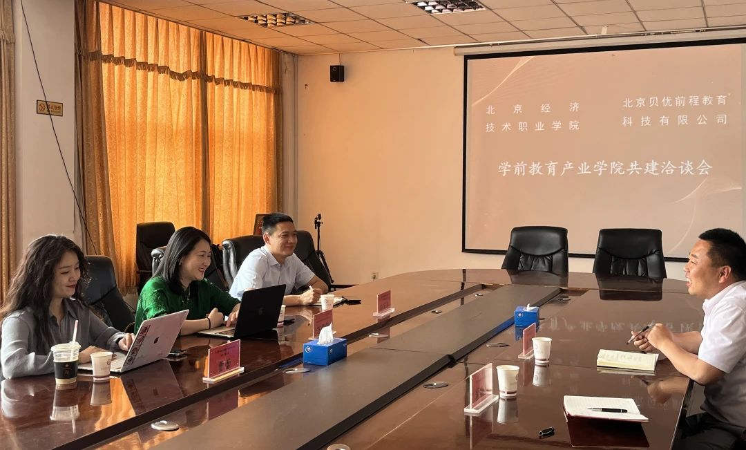5月16日上午,北京贝优前程教育科技有限公司CEO万雯雯、院校运营总监曹蕾、区域负责人孙海洋一行到学院洽谈学前教育产业学院共建事宜。学院学前与健康系主任张超琼、学前教育专业教研室主任翟羽佳出席洽谈会。