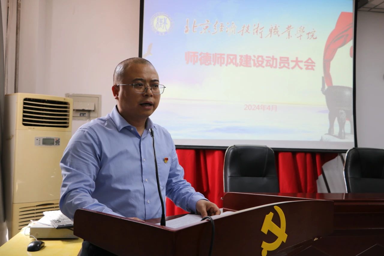 岳洺宇处长传达了北京市教委关于加强师德师风建设的有关文件精神,总结了目前学院师德师风建设情况,并针对如何正确认识师德师风提出要求:全体教师应树立正确的政治观念;建立强烈的责任意识;做到严格的言行自律;发扬团结协作、开拓创新的精神。全体教师应自觉做到政治方向坚定,爱国守法;爱岗敬业,忠于教育事业;潜心提升教学水平;关心爱护学生;廉洁自律,提升自身道德修养。
