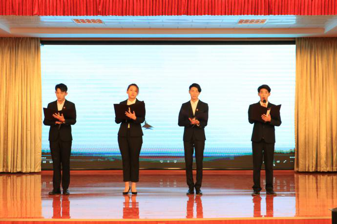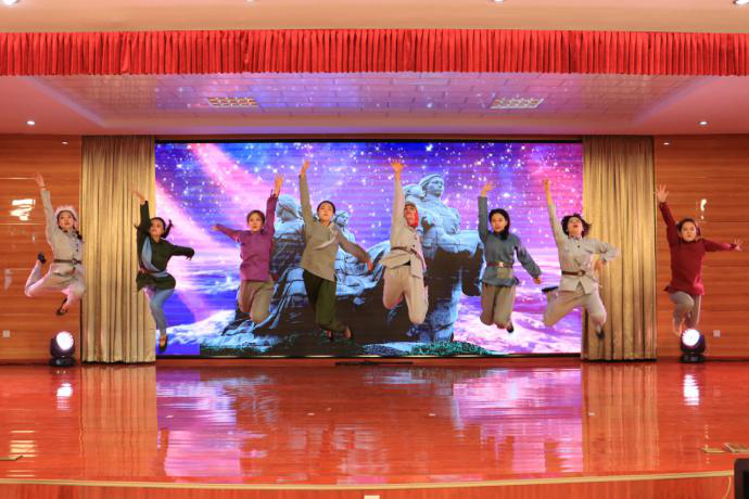燕郊高新区管委会社会发展局领导、学校党政领导班子成员与全校师生代表共同观看演出。