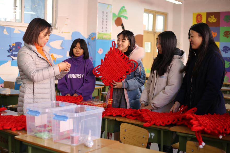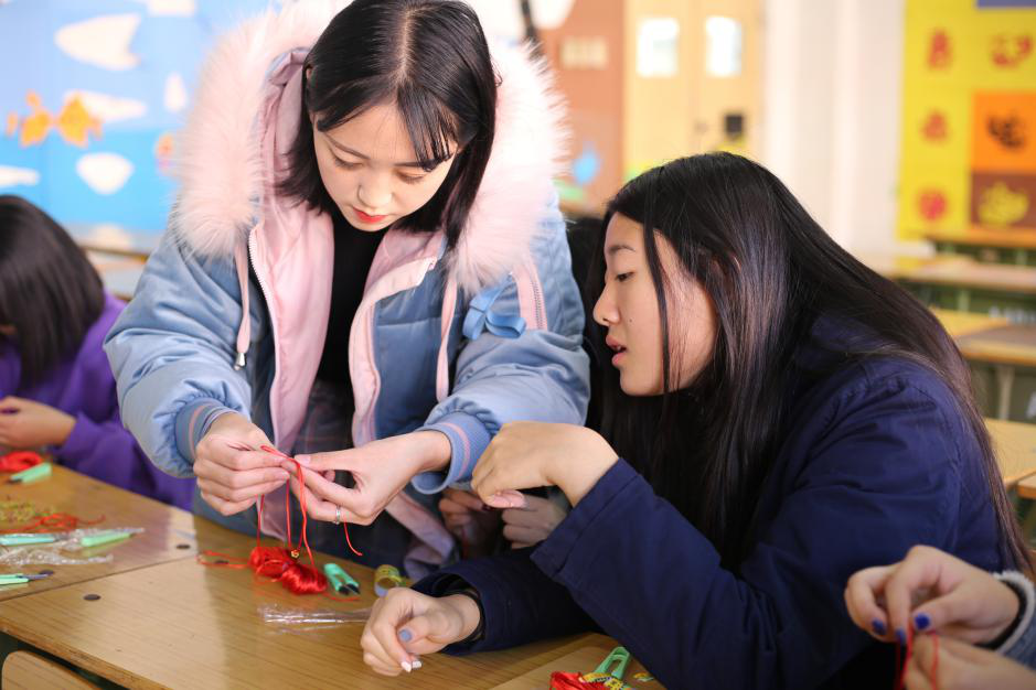 为本次编制中国结课程圆满进行,早在前几天翟羽佳老师就带领着8名志愿者开始学习中国结的编织。