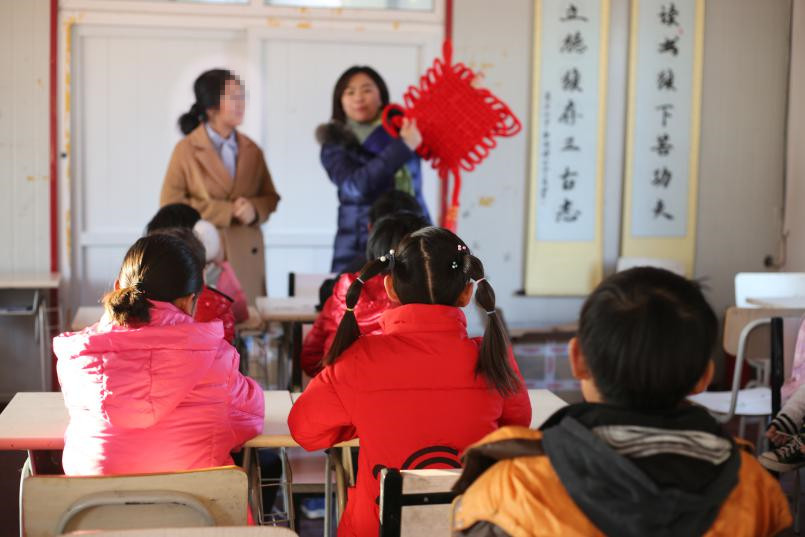 首先,老师给孩子们展示已经编好了的中国结,向孩子们介绍中国结的材料包,中国结、流苏等,并把这些材料发放给每个孩子,孩子们小心接过,并非常有礼貌的跟老师们说谢谢”。孩子们第一次尝试自己动手编织中国结,他们既新奇又兴奋。