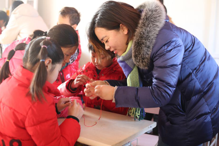 2018年11月25日上午8点钟,两名带队老师翟羽佳、王运春老师以及聘请的专业编织李老师带领志愿者们准时来到太阳村!孩子们见我们来了,很开心,拉着我们的手和我们讲述着近来发生的趣事,又说又笑的到楼上去上课。看到我们拿着中国结,孩子们高兴极了!开讲前,孩子们都非常守纪律,志愿者们把孩子们分成8个小组。