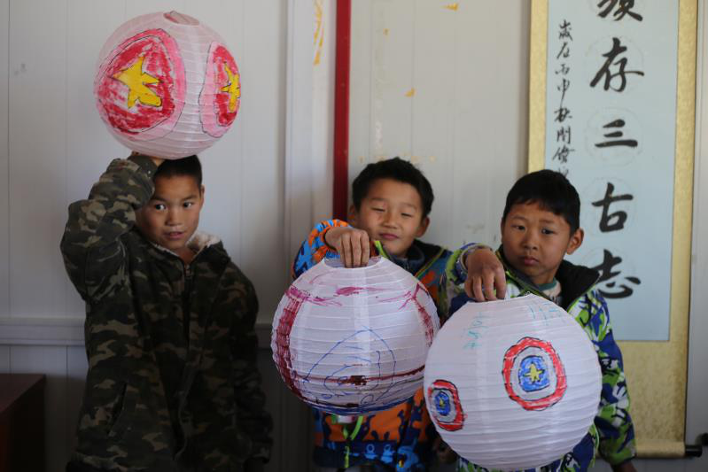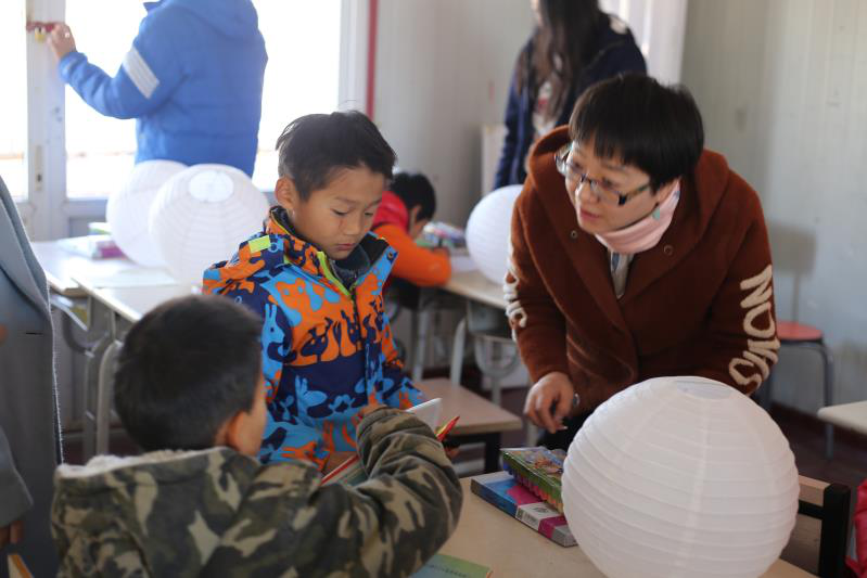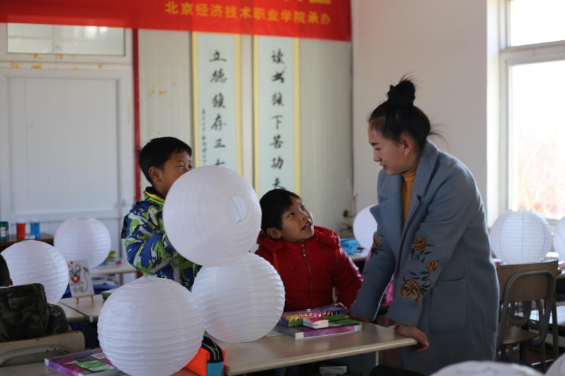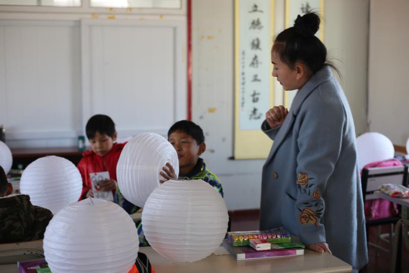 志愿者们分工明确、各司其职,迅速的将课前准备工作就绪。刚开始孩子们有点手忙脚乱,不知道在灯笼上画什么?怎么去画?