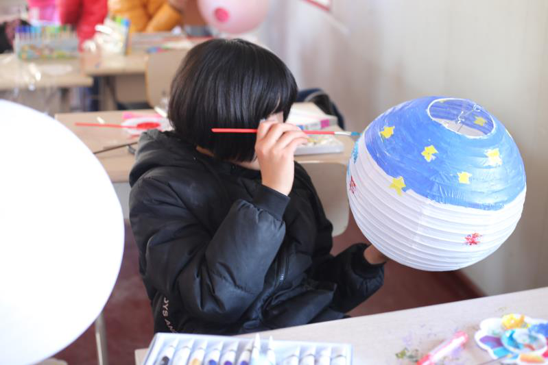 在听完老师和志愿者们的耐心引导后,他们逐渐有了思路,同时有了完成彩绘灯笼的信心!