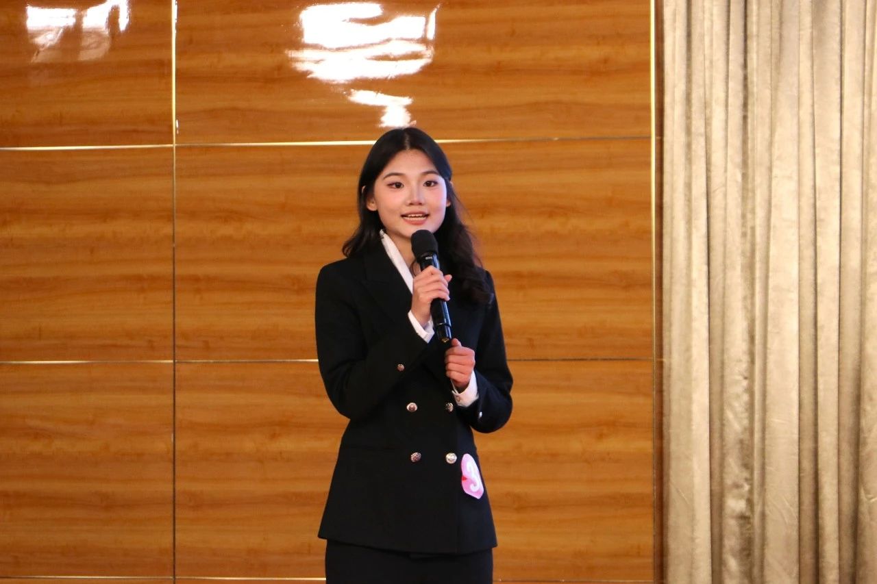 经济管理系23级大数据与会计专业学生李则毅作为学生代表发言。她提到,新时代的青年是祖国未来的希望,是国防发展的主力军,有壮志与激情。她通过向师生分享自己的军旅经历与感悟,激励同学们铭记历史,传承精神,一起逐梦青春,不负韶华,为祖国的强大、为国防的建设燃烧自己的青春热血。
