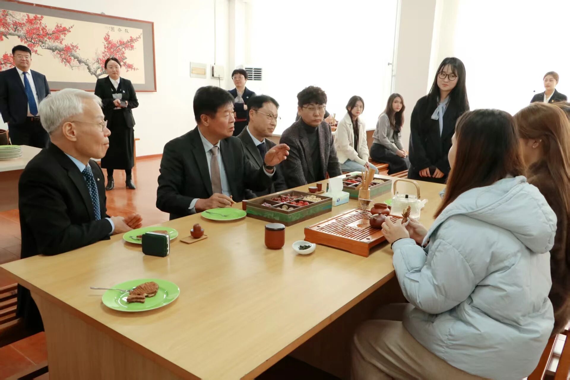 郑润校长一行实地走访并考察了学院的红色育人阵地和专业教学平台。国际学院学生为来宾献上精彩表演,现场还准备了韩国特色美食鱼饼与中国传统茶艺体验,充分展现了中韩文化的交融互鉴。代表团与国际学院学生们亲切交流,现场气氛融洽。代表团对我院融合实践教学与文化传承的育人理念给予高度评价,并对学生展现出的扎实专业技能与良好文化素养表示赞赏。