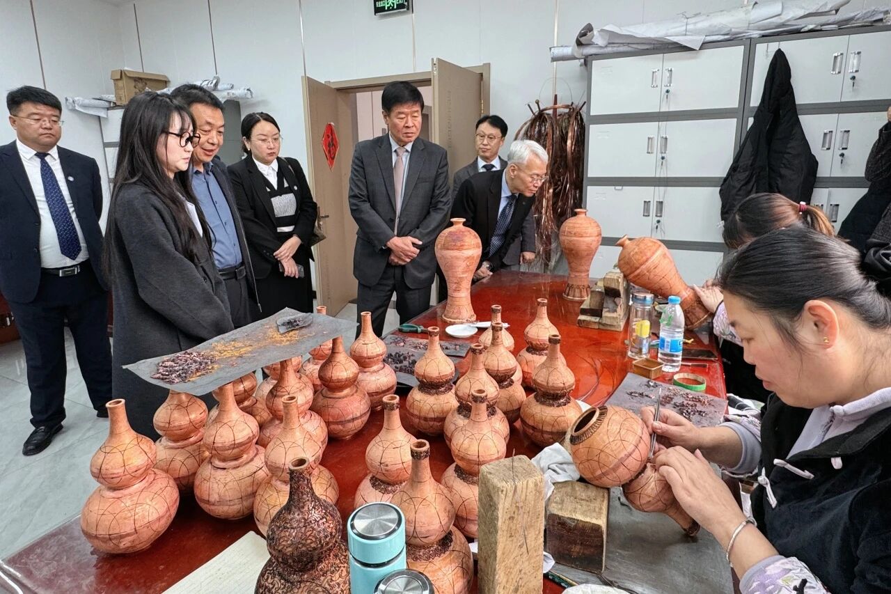 下午,郑润校长一行在祁杰副院长等陪同下,赴我院校企合作单位参观景泰蓝掐丝珐琅制作工艺流程,并对该非遗项目的保护与传承以及我院校企合作模式表示认可。随后,嘉宾前往北京大运河博物馆参观,沿运河文化长廊漫步,领略千年运河的历史文脉与人文底蕴。