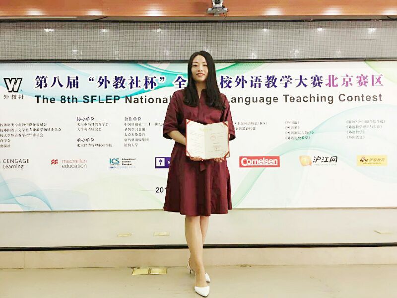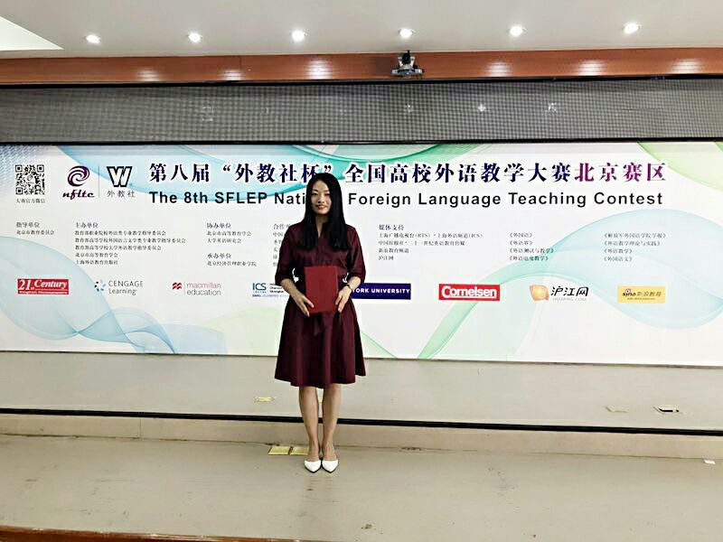 比赛参赛选手众多,竞争激烈。经过激烈角逐,我校文化与传媒学院英语教研室兰倩倩老师凭借其流利的英语口语、精心的课堂设计、过硬的临场反应能力得到三等奖第二名的好成绩,与二等奖仅1分之隔。英语教研室主任范华副教授获得指导教师奖。大赛主要考察选手的语言基本功、教学基本功、教学思辨力,从教学内容、教学过程、教学效果及综合素质四大方面进行采分。北京市高校英语教师同台竞技,更加锻炼了我院英语教师的教学能力,领略到更加先进的教学方法和教学理念,为今后我院外语教学的进一步提高打下坚实的基础。
