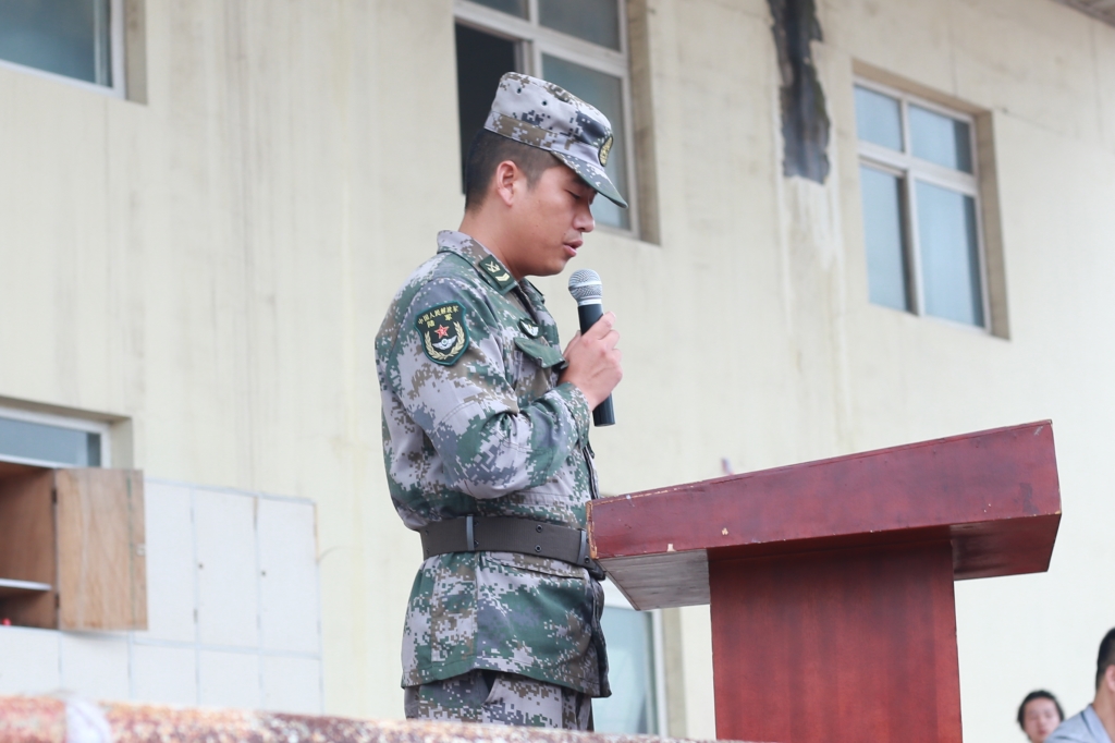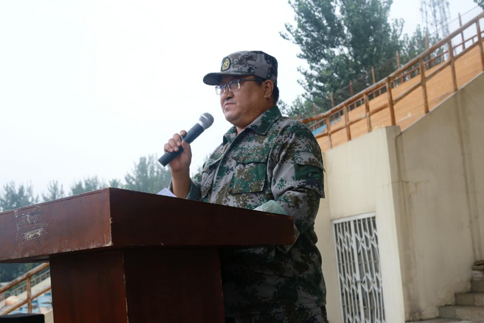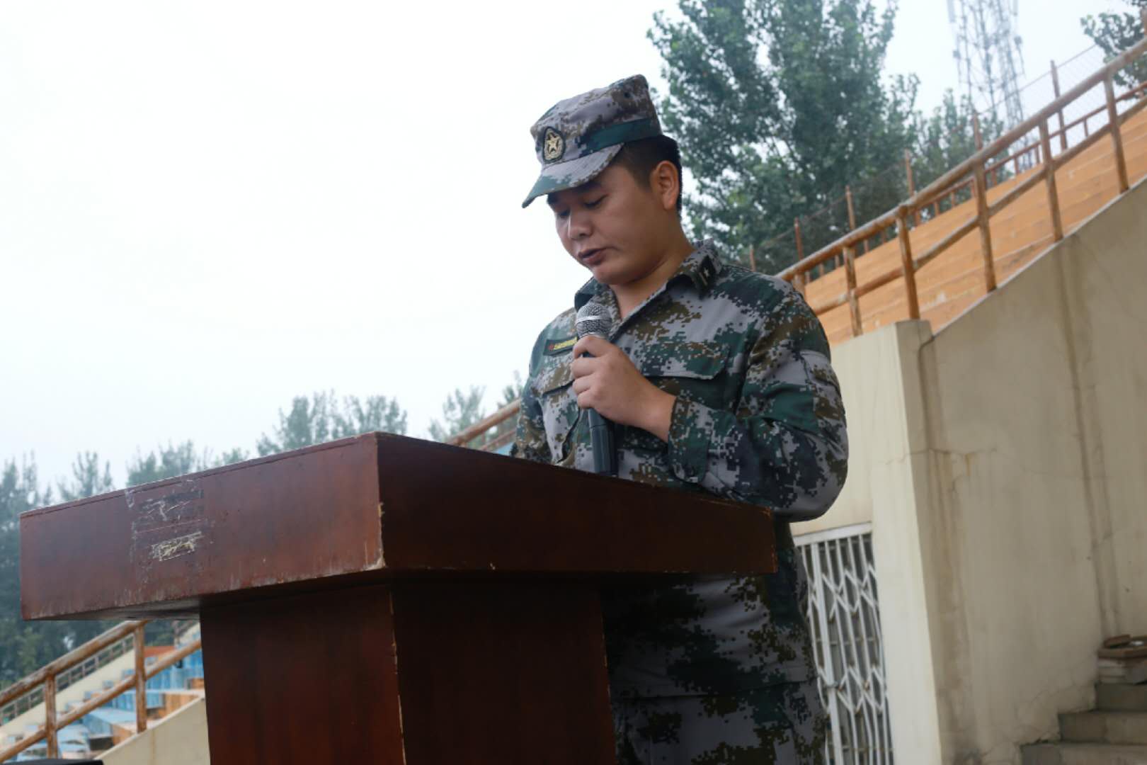 训练队队长胡忠记同志做军训动员讲话,他希望同学们要有渊博的知识和健康的体魄,更要有良好的品德,百折不挠的意志和令行禁止的作风。同时要求全体训练官兵坚持科学组训、正规施训,确保质量和安全,高标准的完成这次军训任务。