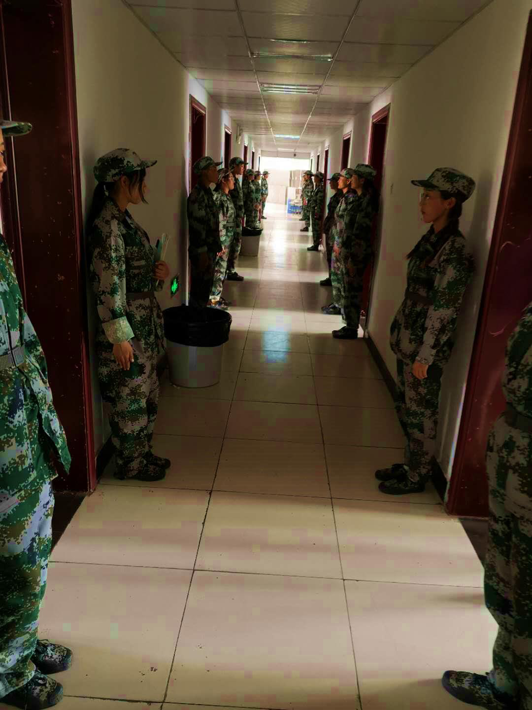 宿舍是学生生活和休息的重要场所。张院长走进新生宿舍,仔细察看了军训新生的内务整理情况。当看到新生寝室全部达到“被子方正、床铺平整、地面如镜”的内务要求后,张院长十分高兴,对他们的内务整理情况给予了充分肯定。