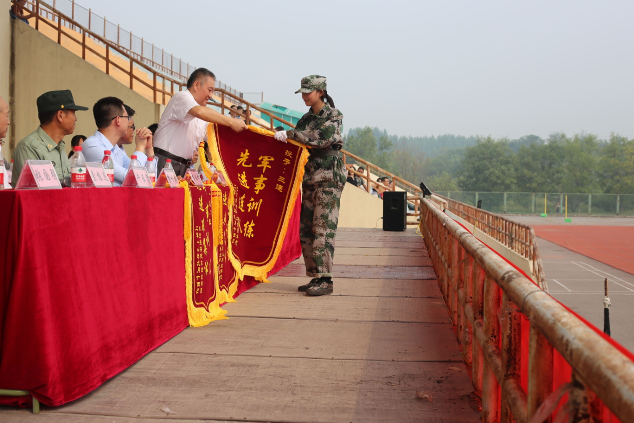 学院常务副院长李润坤同志向承训基地赠送锦旗,感谢所有教官付出的辛苦与汗水。