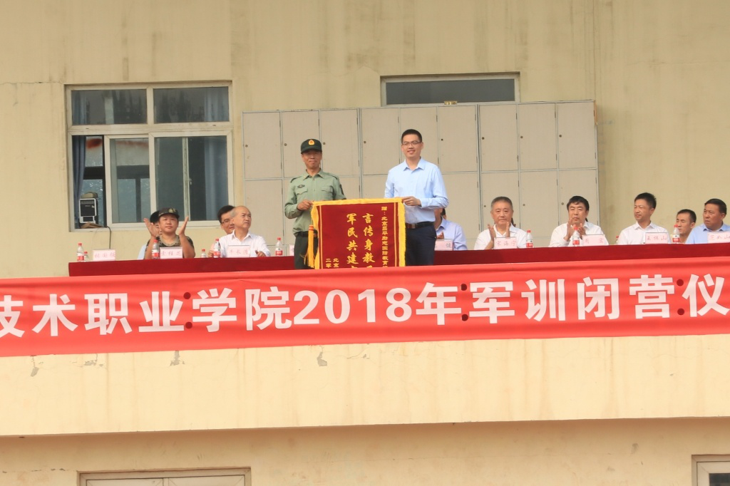 2018年9月14日,beat365中文官方网站2018年学生军训闭营仪式暨新生开学典礼在体育场隆重举行。北京市教委党建联络员兼教育教学督导宋海宁同志;学院董事会董事、法律顾问张健同志;承训基地负责人、军训团团长李世举同志;学院党总支书记周宏同志;学院常务副院长李润坤同志;学院院长助理王振山同志;学院院长助理范如山同志;以及学院各行政处室负责人、各二级学院负责人共同出席了本次学生军训闭营仪式暨新生开学典礼。典礼由学院院长助理张国强主持。