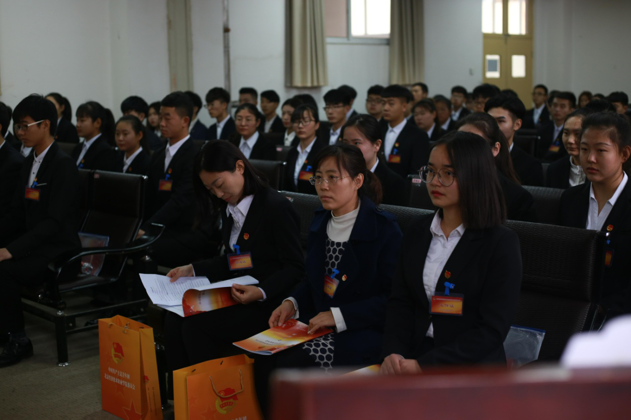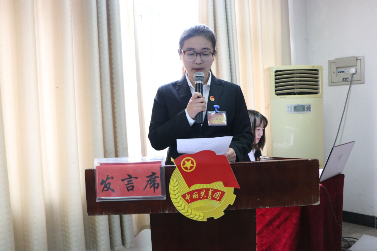 胡静微同志代表共青团beat365中文官方网站第二届委员会作题为《锐意进取、开拓创新、团结带领全院团员青年不忘初心跟党走、为建设高水平特色高职院校贡献力量》的工作报告。