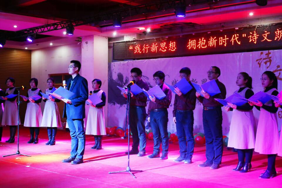 习近平总书记在十九大报告中指出:“青年兴则国家兴,青年强则国家强。青年一代有理想、有本领、有担当,国家就有前途,民族就有希望。中国梦是历史的、现实的,也是未来的;是我们这一代的,更是青年一代的。” 此次“践行新思想 拥抱新时代”主题诗文朗诵晚会积极响应了党的十九大正确领导,不负初心,牢记使命,更加彰显了我校师生朝气蓬勃的精神风貌,同时希望新的一年坚定信心,真抓实干,携手登攀,再创新的辉煌。
