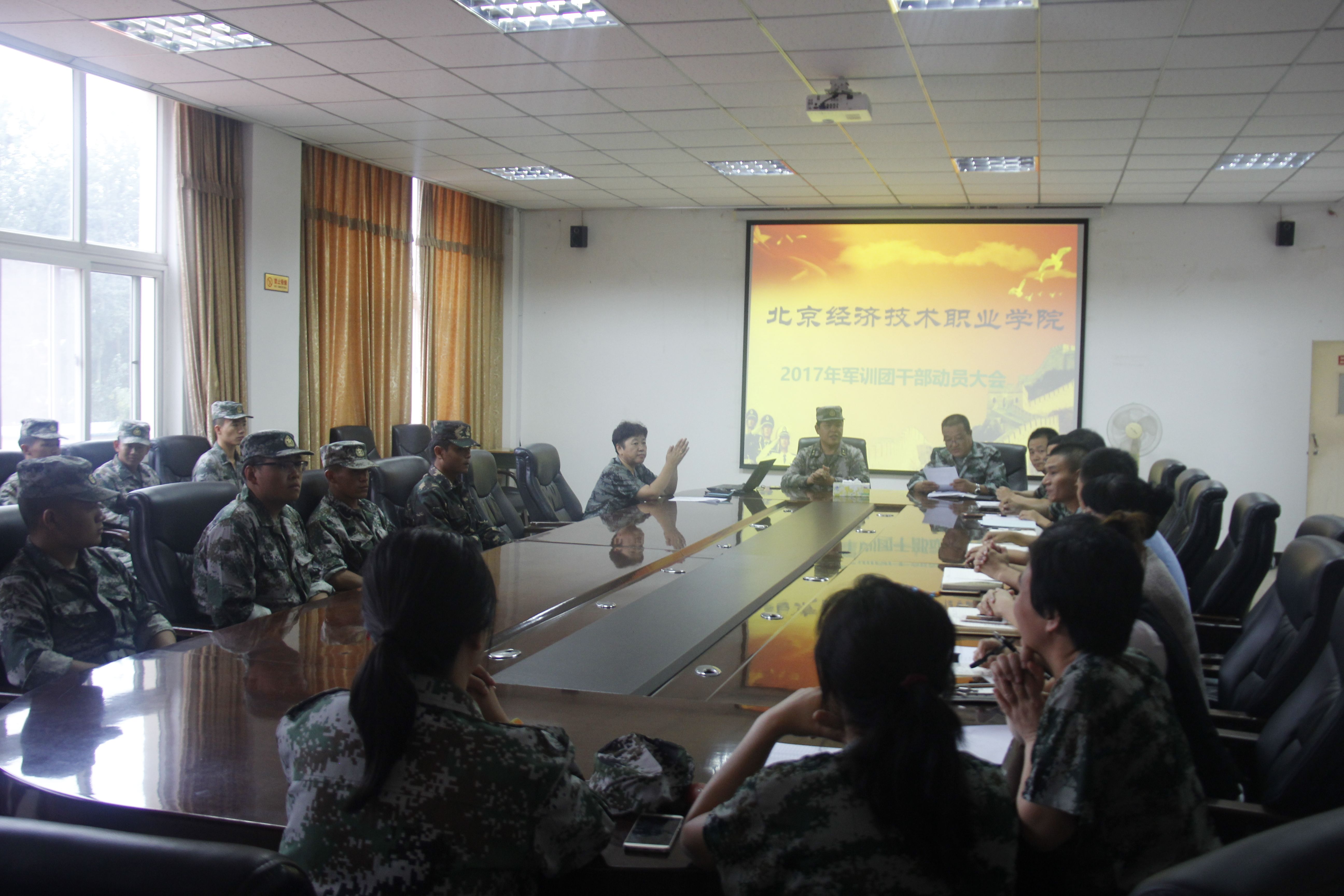 8月26日,beat365中文官方网站2017年军训团干部动员大会在小会议室召开。军训团团长李保华,政委张国强,参谋长王振山,副参谋长索桂芝,政治部主任李冬雪,副主任胡静微出席会议,军训团各营营长、教导员、指导员、全体承训官兵参会。会议由索桂芝主持。