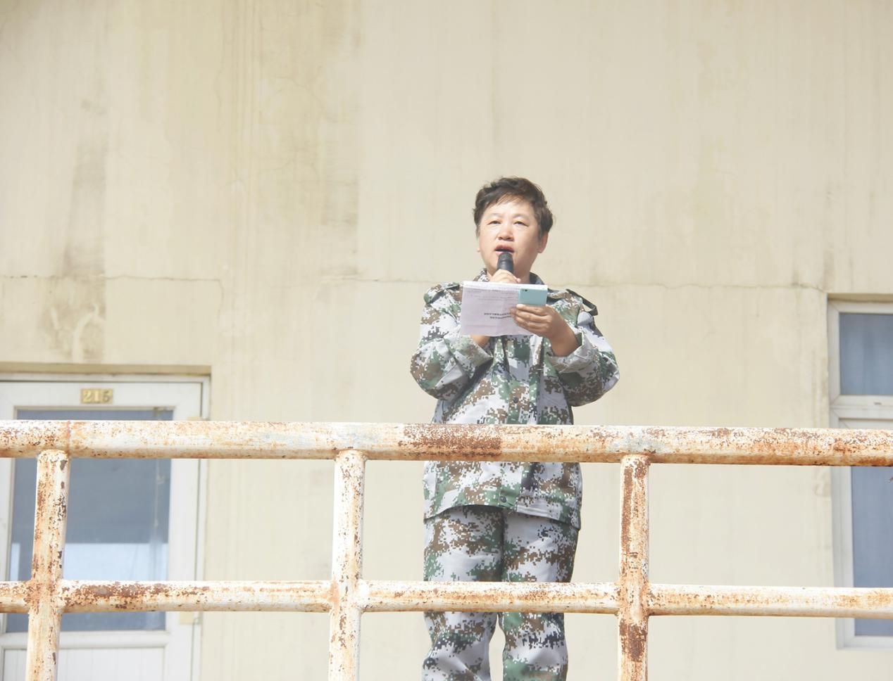 军训团团长李保华做军训动员讲话,他强调了部队里钢铁一般的纪律,希望同学们在军训期间严格遵守规章制度,积极融入集体,刻苦训练。