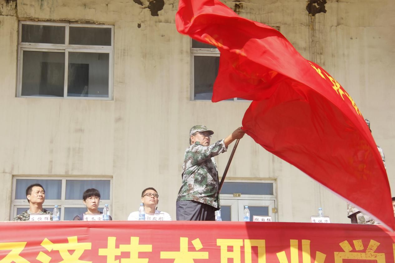 学院院长助理张国强宣布“2017年beat365中文官方网站职业学院学生军训团成立”,并向军训团团长李保华授军训团团旗。