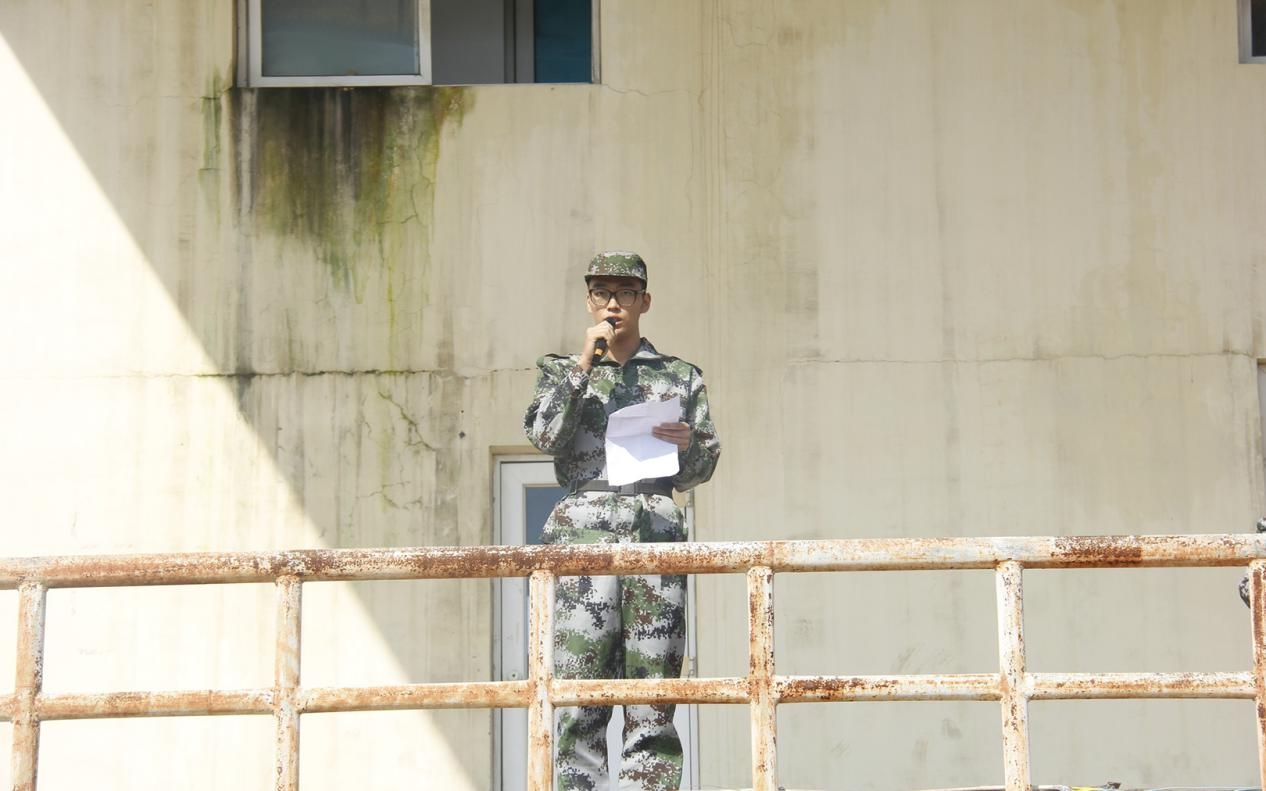 文化传媒学院王羽超同学代表2017级全体参训学生表决心。在军训期间一定服从教官和指导员的管理,虚心向教官学习,认真学习国防知识,增强国防意识。