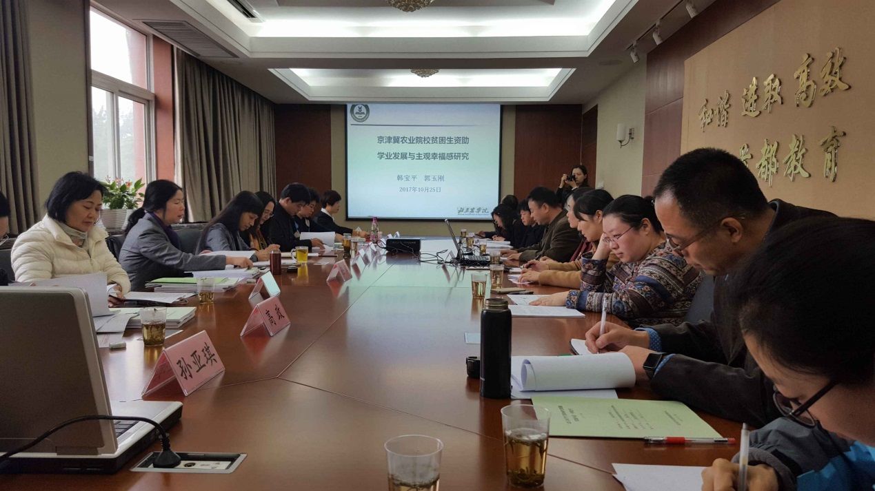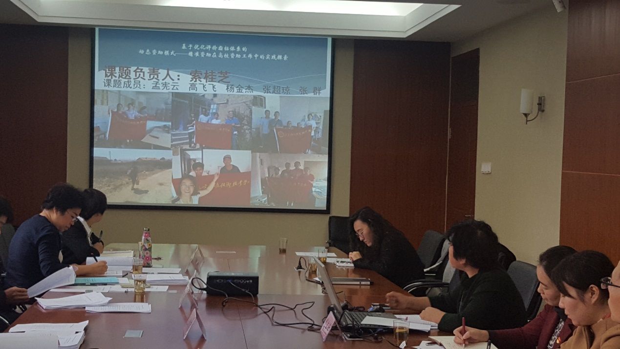 10月25日,我校通过了北京市学生资助中心2016年度学生资助研究课题结题验收工作,学工处处长课题负责人索桂芝同志向专家组成员进行了课题立项、课题进展情况和取得的成果进行了专项汇报,与会专家对我校在课题研究和创新方面给与了建议,对我校资助人员深入贫困家庭一线实地调研工作成果,在资助育人,关注贫困学生发展方面给与了良好的评价。我校2017年度北京市学生资助课题申报工作正在进行中。