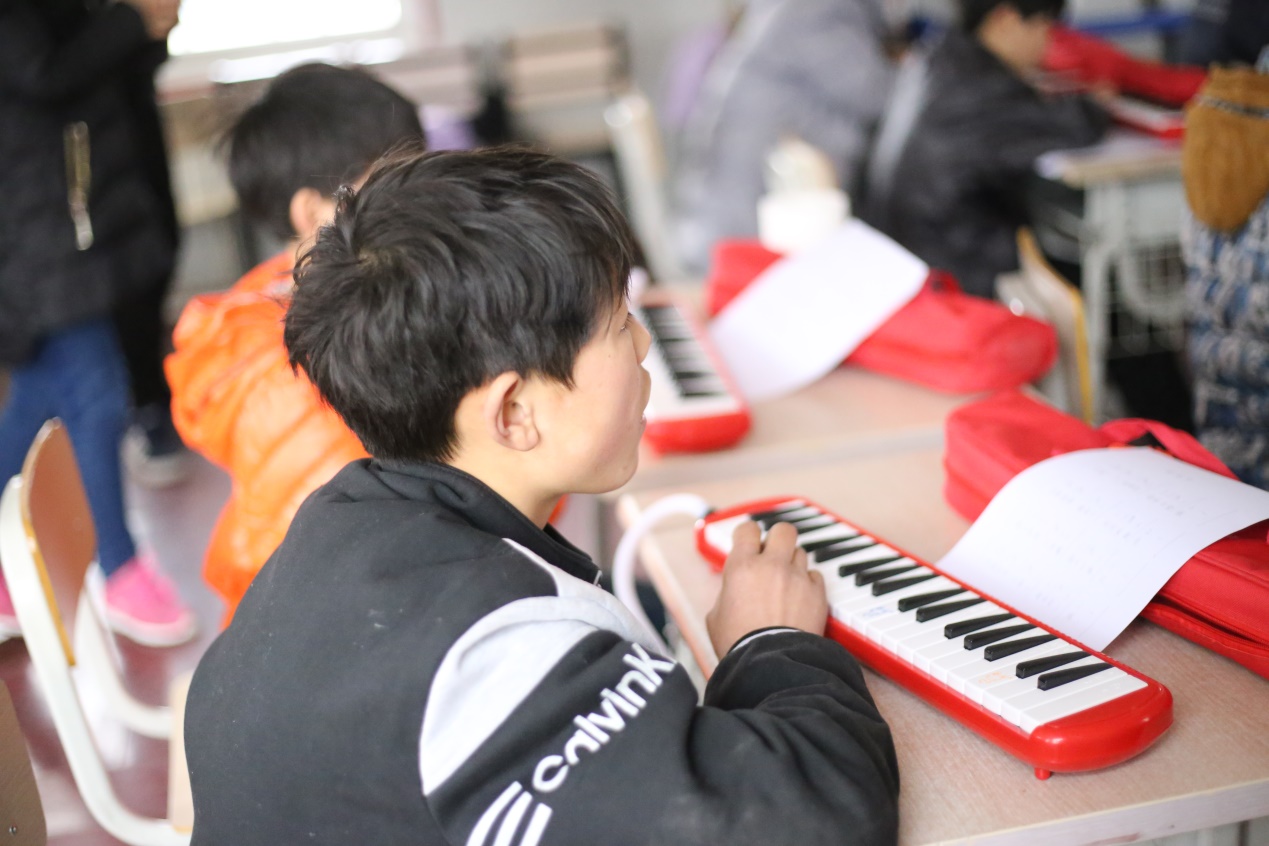 为了方便孩子们的学习,我校为太阳村的孩子们准备了人手一台的口风琴,让孩子们在练习中感受“一种和谐、平衡、完美的口风琴音响运动形式”,鼓励和提高孩子对音乐艺术的兴趣,使孩子获得由它带来的更多、更广泛的音乐知识,启迪智慧。本次课程翟羽佳老师教授了一曲《粉刷匠》,孩子们拿到口风琴都特别兴奋,学的很认真,很快,大家就吹成一片。