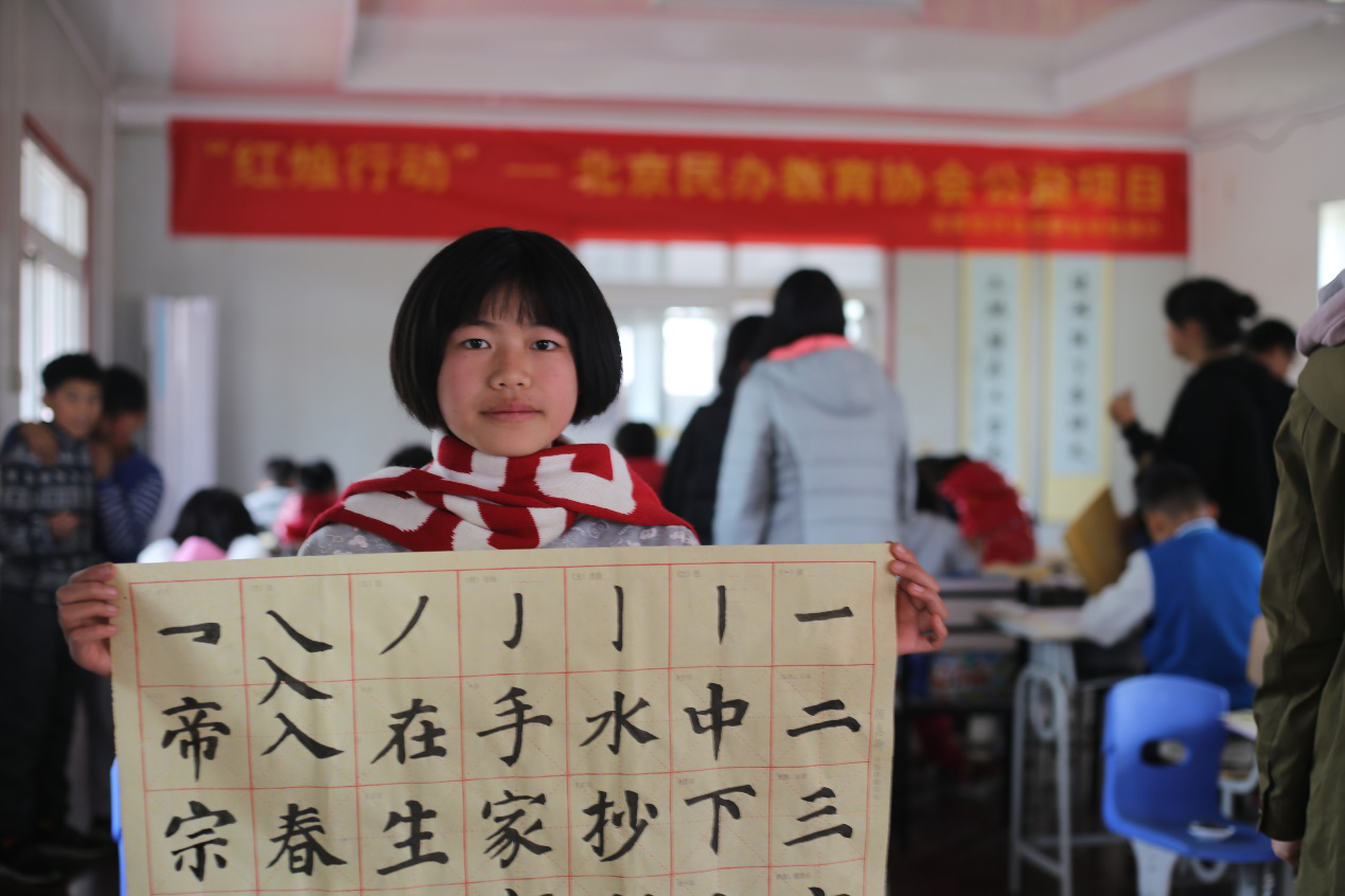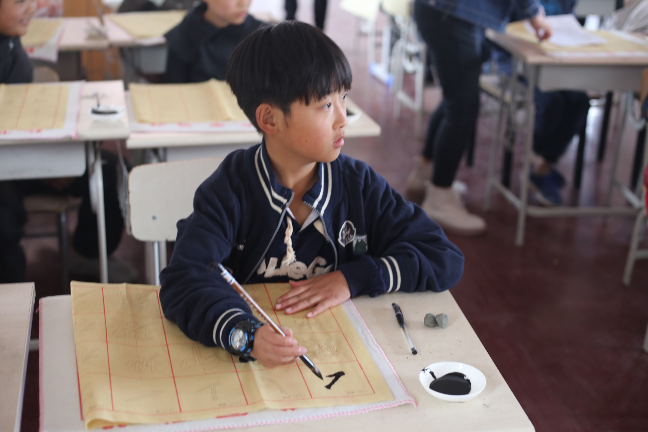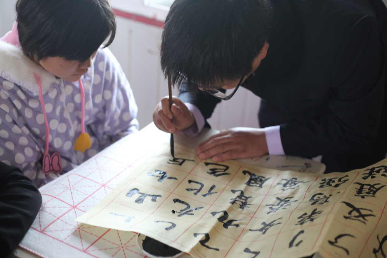 孩子们已经不是第一次去学习书法,从最初的不会拿毛笔,急躁的描字,到慢慢开始一笔一划认真的练习,大多数学生取得的进步是非常显著的,通过书法,他们得到了快乐,看到他们非常开心,所有的志愿者也是露出了笑容。