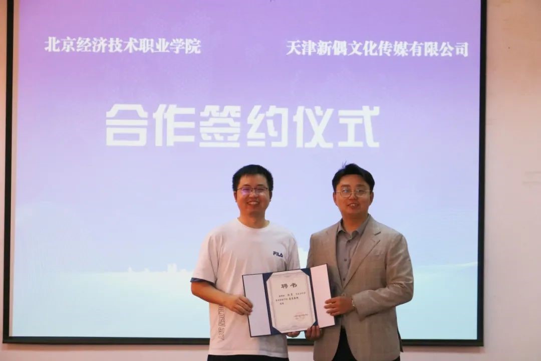 学院院长周川代表beat365中文官方网站与天津新偶文化传媒有限公司签订校企合作协议。双方将在教学实践、专业培训、实习就业等方面达成深度合作。