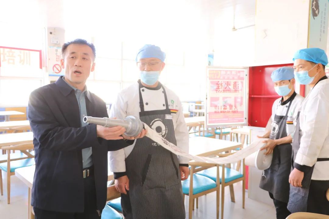 安全处副处长翟玉军首先通报了全国近期发生的几次典型消防安全事故,就校园食堂商超容易出现的安全隐患进行了分析,强调了食堂商超从业人员属于重点岗位人员,应当掌握防火、灭火、应急疏散逃生常识,明确安全生产实行 “三管三必须”,即管行业必须管安全、管业务必须管安全、管生产经营必须管安全。他要求食堂商超从业人员要将消防安全牢记心中,学习消防安全知识,做到“四懂四会”;要做好日常检查,设置安全员,做好应急准备。随后对食堂商超从业人员从灭火器、灭火毯、消防栓的使用方法以及油锅灭火等方面进行了实操培训。