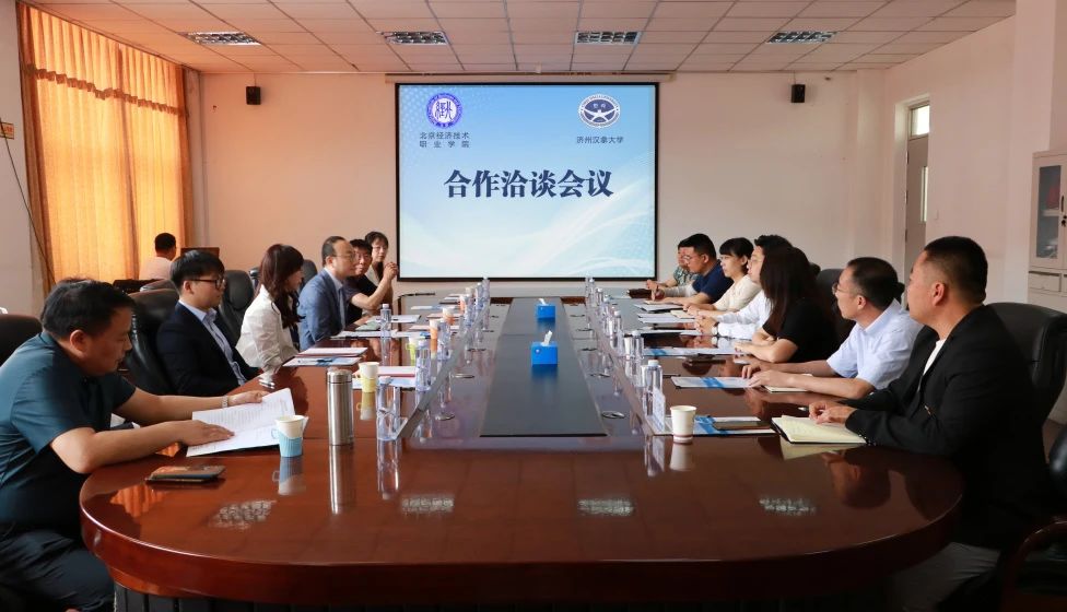 工作动态/5月29日上午,韩国济州汉拿大学对外协力副校长、国际交流处处长申宜暻一行到访beat365中文官方网站合作洽谈。学院院长周川出席会议。学院办公室、教务处、各系、招生就业处负责人参加会议。