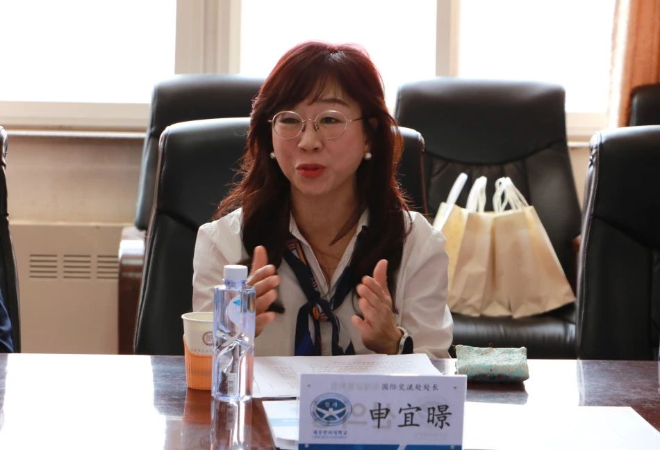 申宜暻副校长对学院的热情接待表示感谢。她介绍了韩国济州汉拿大学的整体概况、优势专业、就业前景、合作办学项目等情况。她表示,期待与学院在学科建设、合作交流、人才培养等方面加强交流,共同探索更多合作模式。