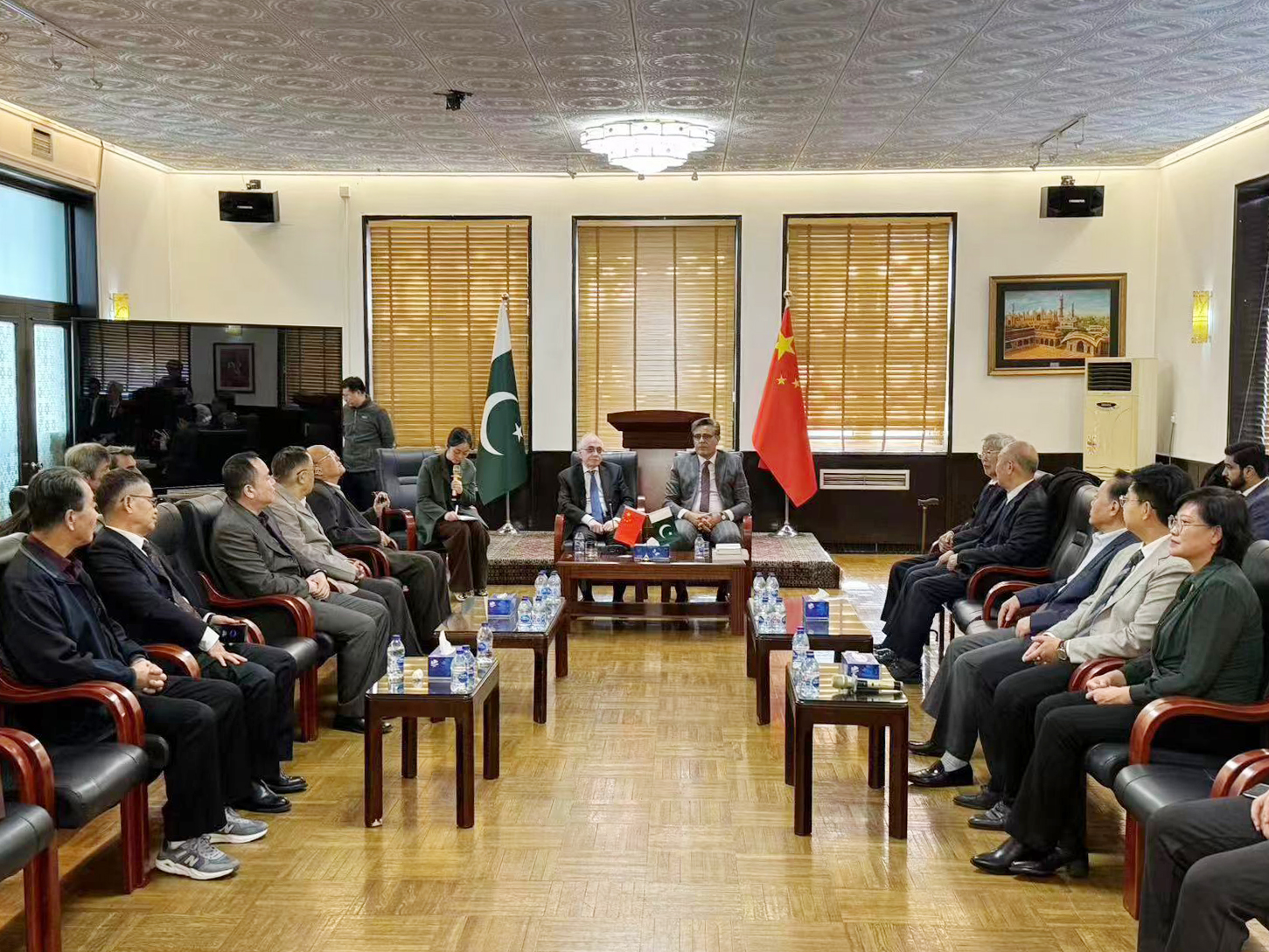 11月28日,受巴基斯坦驻华大使馆邀请,beat365中文官方网站董事长周玉树、院长周川一行,到巴基斯坦驻华大使馆拜会新任驻华大使哈什米,并受到前大使马苏德•哈立德和新任大使哈什米的单独会见。