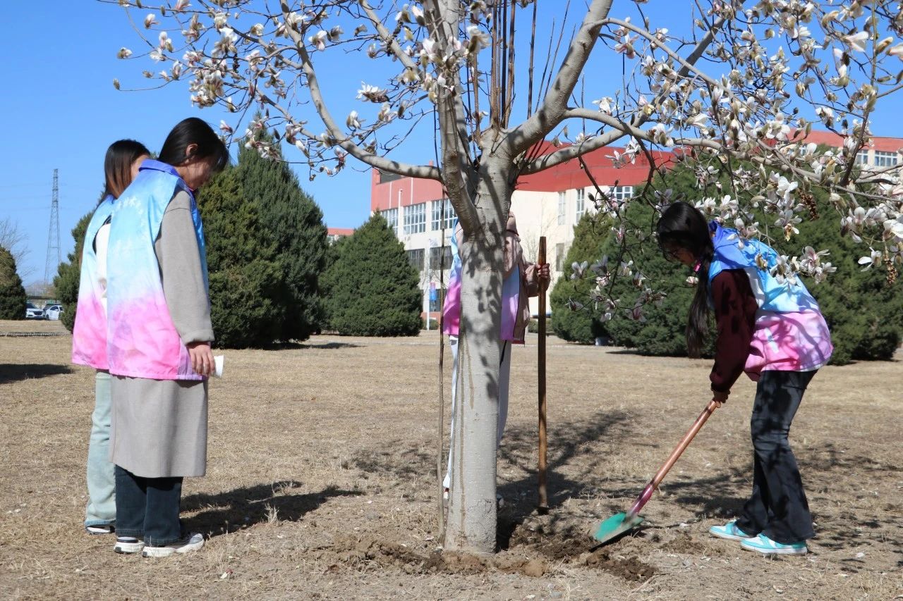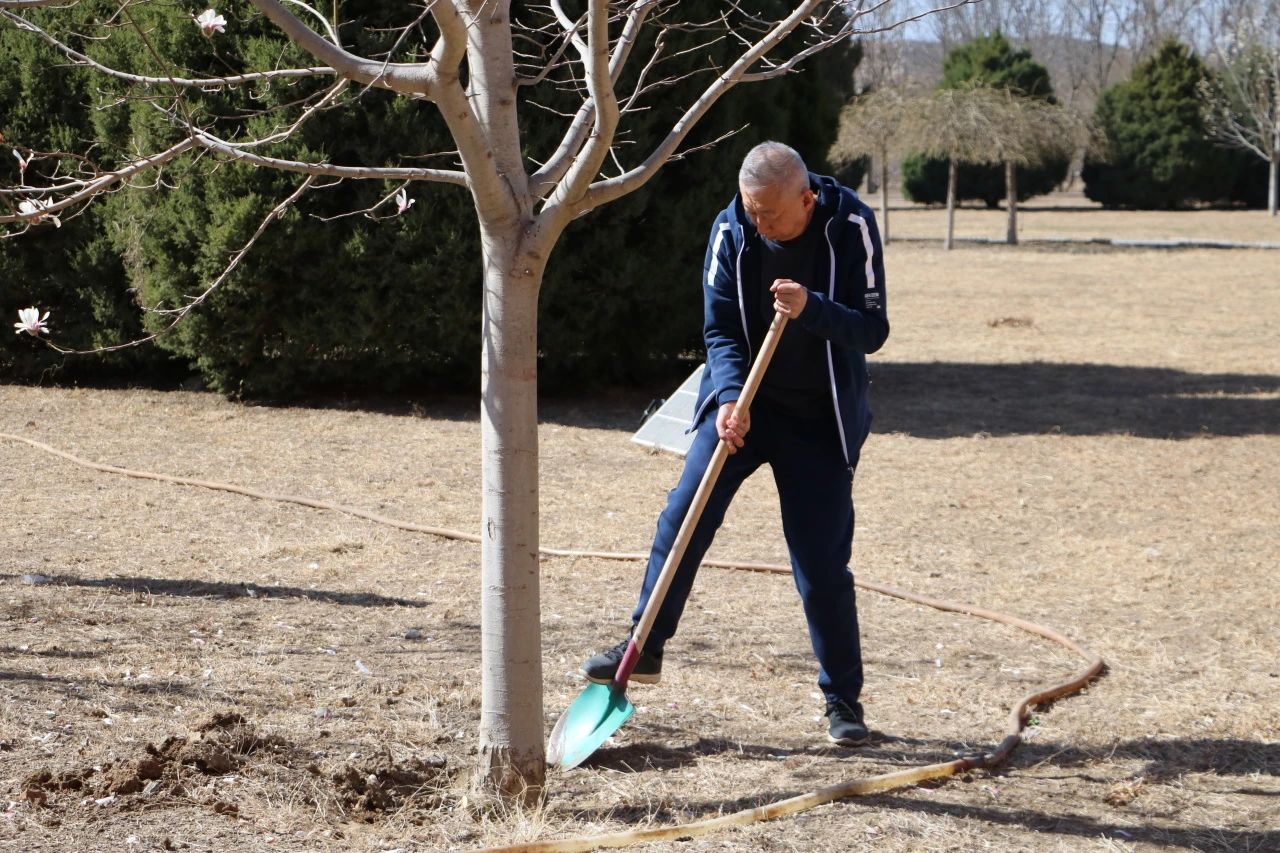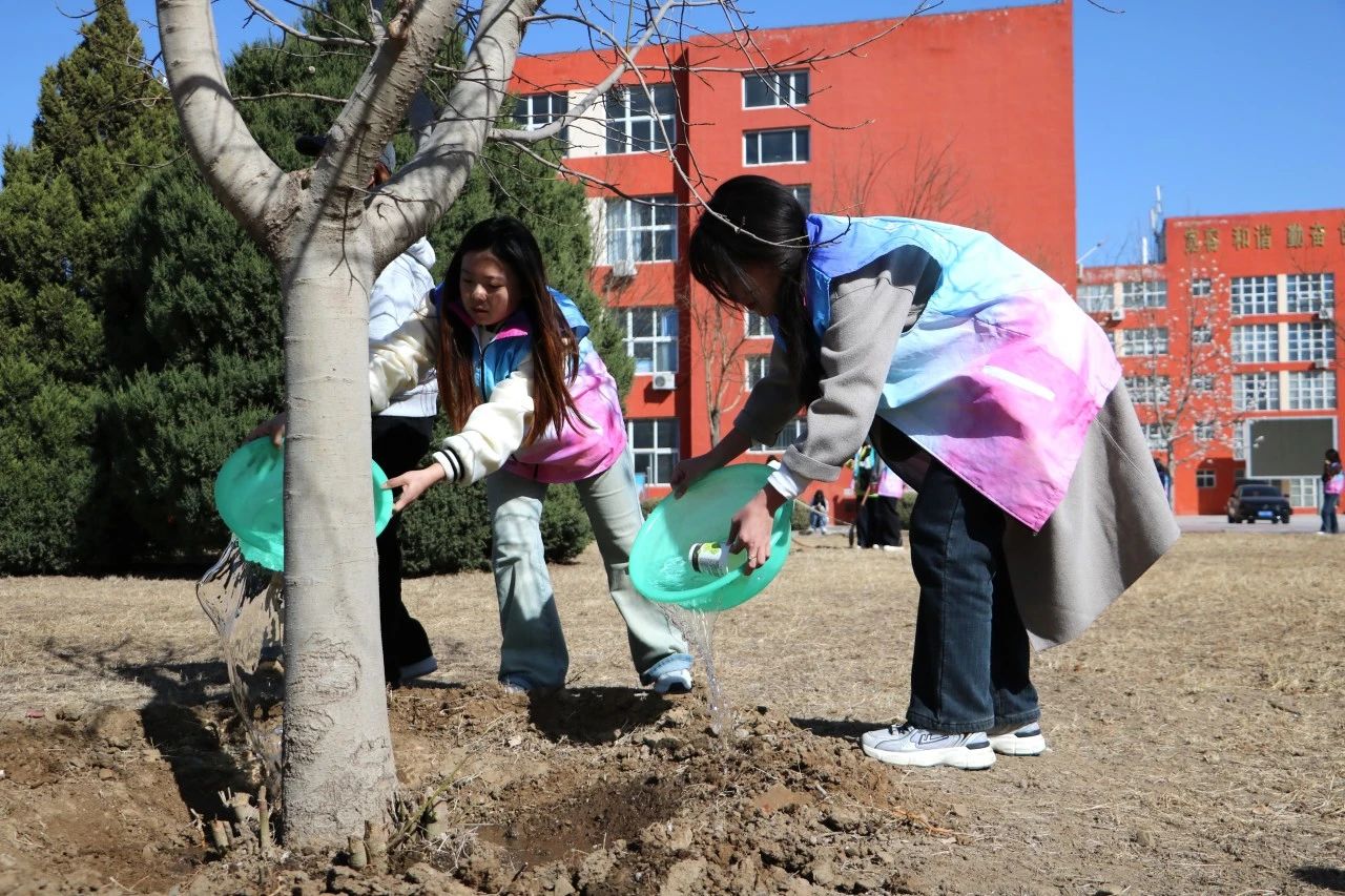 活动中,师生们纷纷拿起铁锹、水桶等工具,通过给花草树木浇水、培土、清理等行动美化环境。在师生们的辛勤劳作下,一棵棵树木盎然挺立,焕发勃勃生机。师生们用实际行动诠释了“绿水青山就是金山银山”的理念,展现了积极向上的精神风貌。师生们共同种下的每一棵树苗,不仅象征着绿色发展的希望,也寓意着中华优秀传统文化的根深叶茂。这些树苗将在未来茁壮成长,正如北经学子一样,在知识的滋养下,向下扎根,向上生长。
