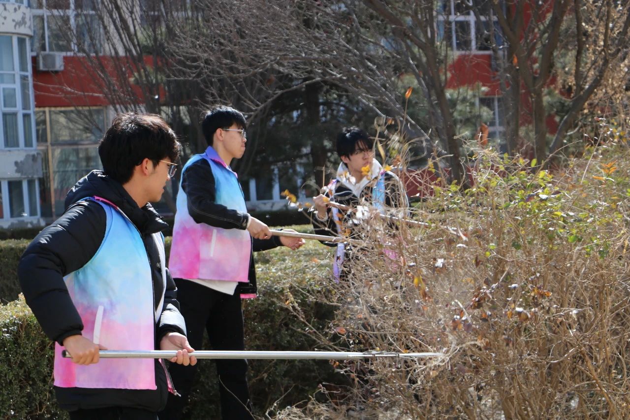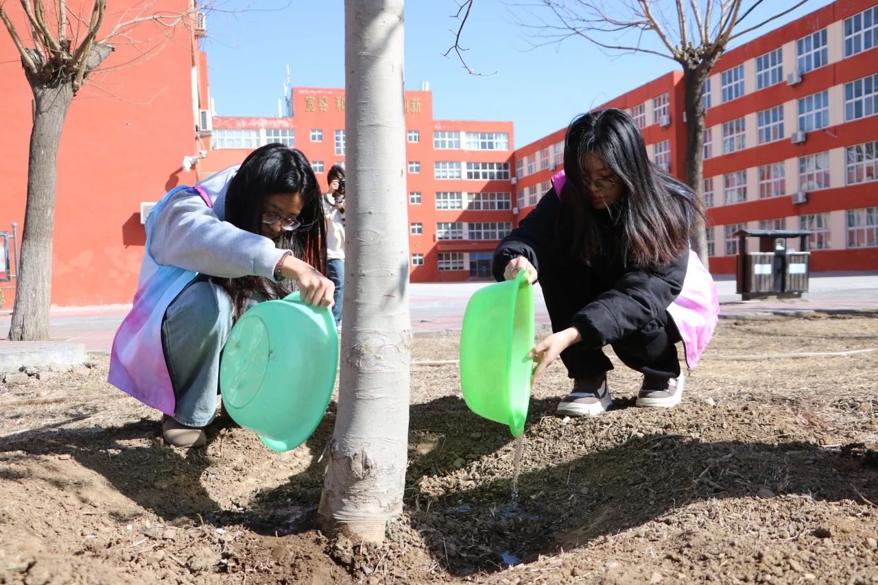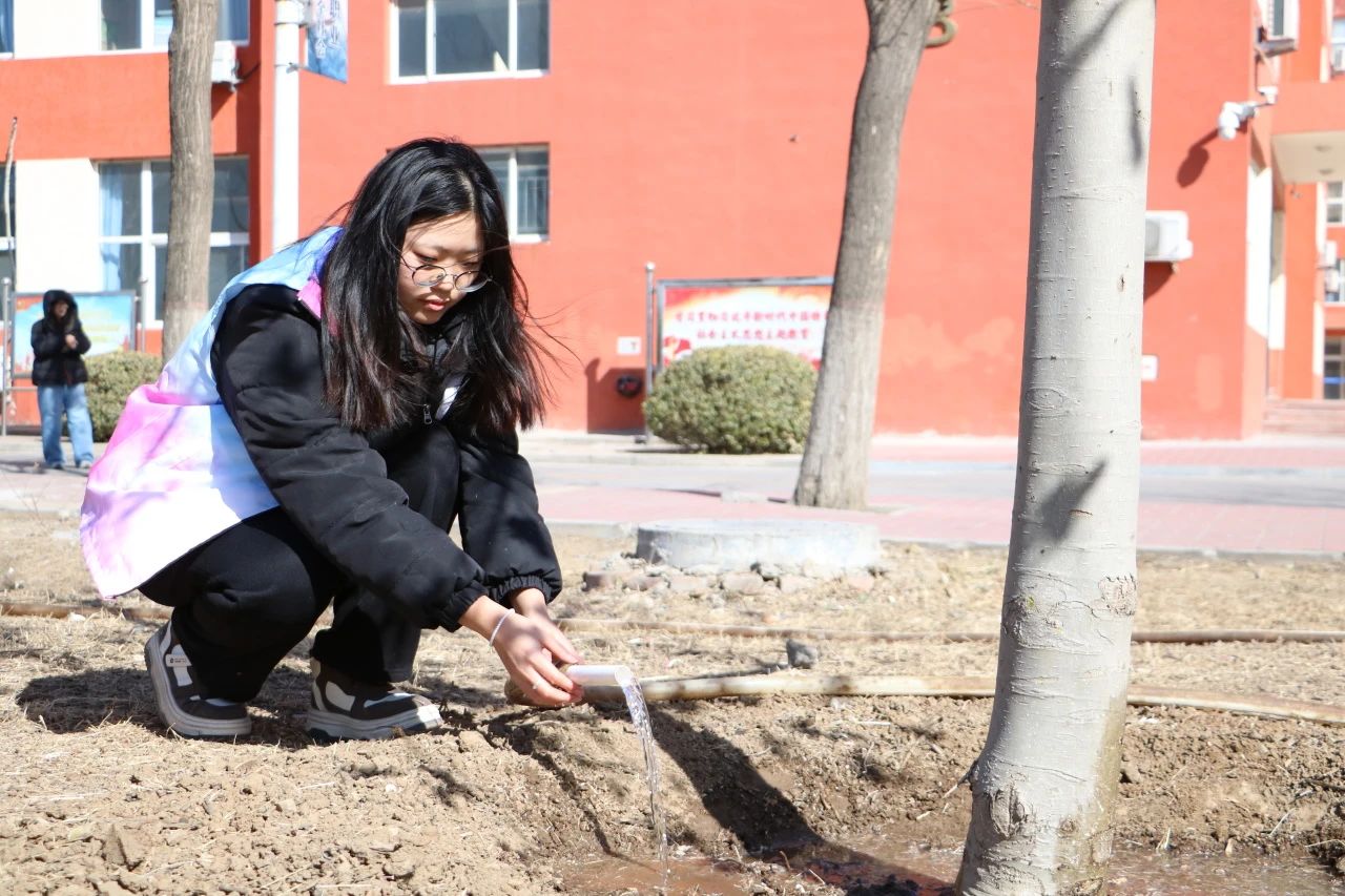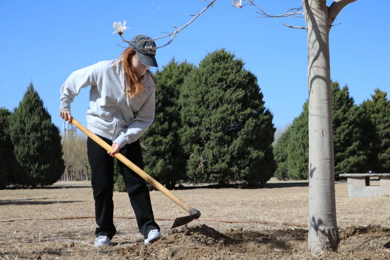 活动中,师生们纷纷拿起铁锹、水桶等工具,通过给花草树木浇水、培土、清理等行动美化环境。在师生们的辛勤劳作下,一棵棵树木盎然挺立,焕发勃勃生机。师生们用实际行动诠释了“绿水青山就是金山银山”的理念,展现了积极向上的精神风貌。师生们共同种下的每一棵树苗,不仅象征着绿色发展的希望,也寓意着中华优秀传统文化的根深叶茂。这些树苗将在未来茁壮成长,正如北经学子一样,在知识的滋养下,向下扎根,向上生长。